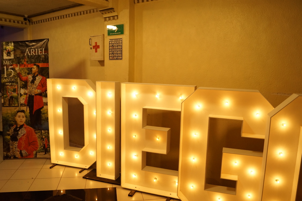 Letras gigantes de bienvenida con el nombre o inciales del festejad@